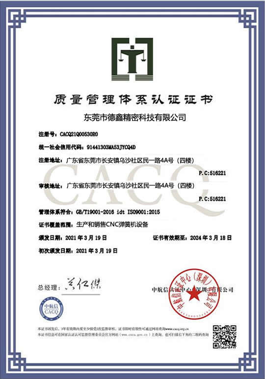 通過ISO9001: 2015認(rèn)證企業(yè)